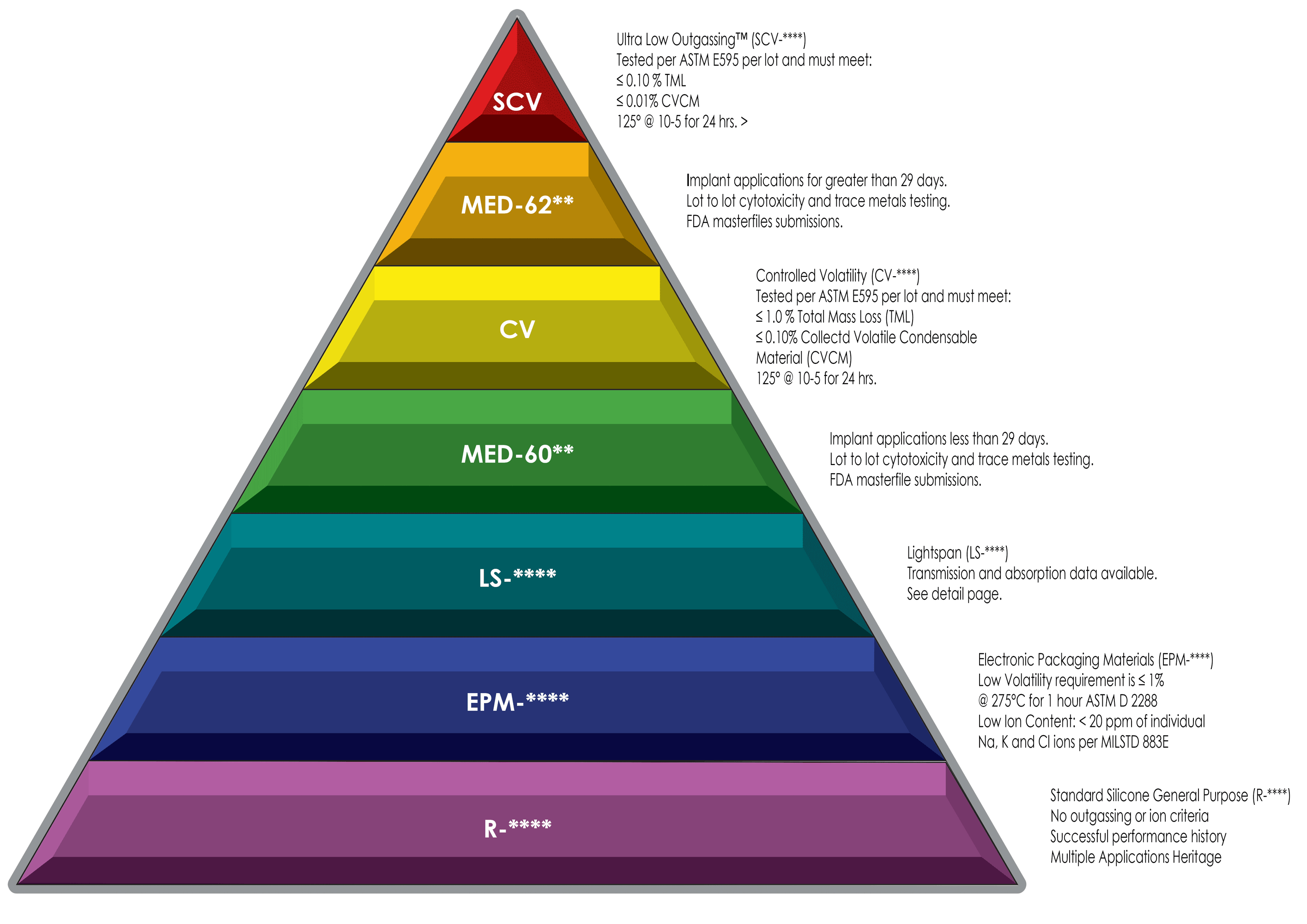Ultra Low Outgassing™ (SCV-****) Tested per ASTM E595 per lot and must meet: |